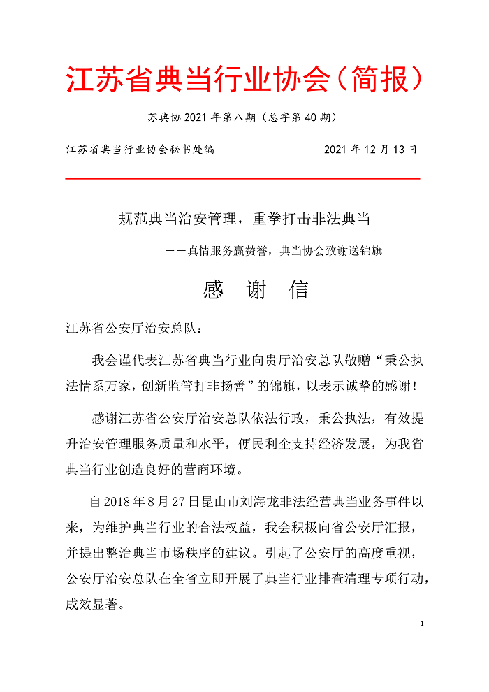 江苏典当简报(2021)第八期